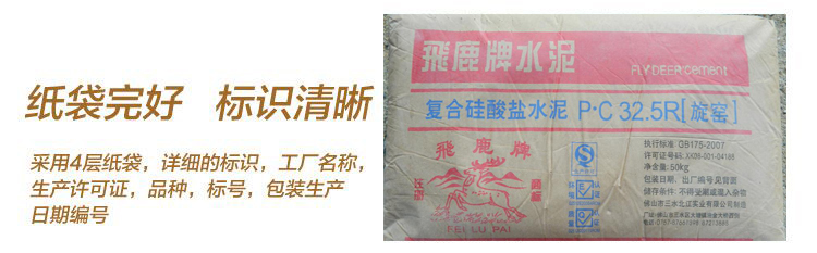 飛鹿水泥標號應用范圍PC32.5R、pc32.5一般工業與民用建筑,凝結硬化慢,早期強度不高,后期強度增長較快,用于農村公路建設、水利工程。農村自建房及裝修市場。
