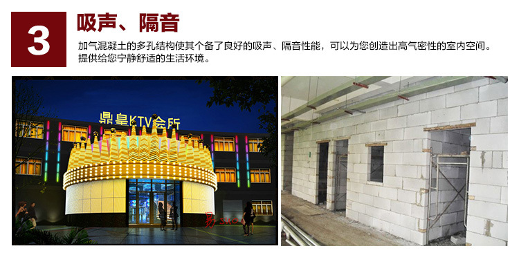 3、 吸聲、隔音:加氣混凝土的多孔結構使其個備了良好的吸聲、隔音性能,可以為您創造出高氣密性的室內空間。提供給您寧靜舒適的生活環境。