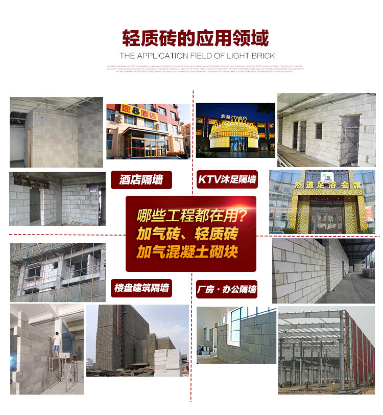 3、 施工性:輕質磚具有良好的可加工性,施工方便簡單,由于塊大、質輕,可以減輕勞動強度,提高施工效率,縮短建設工期。